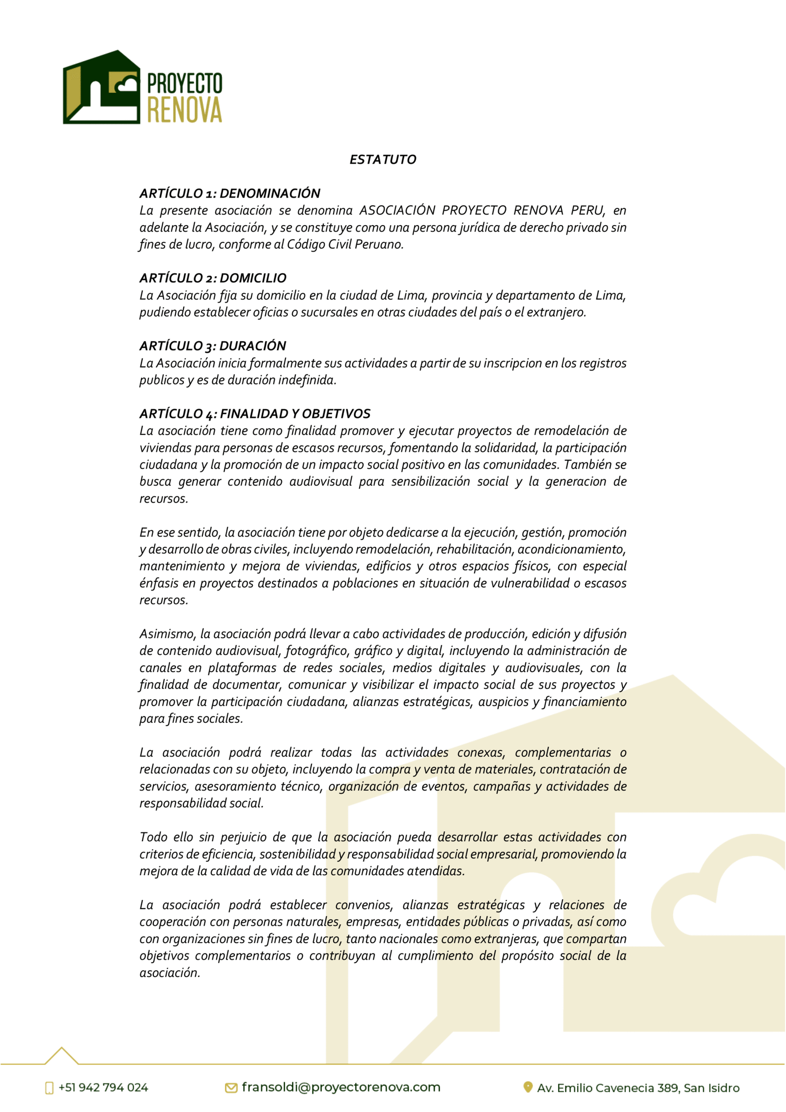 En Proyecto Renova, la transparencia es un pilar fundamental en nuestro accionar. En este apartado podrás encontrar información fundamental sobre la Asociación, e iremos incluyendo siempre documentos relevantes de gestión.